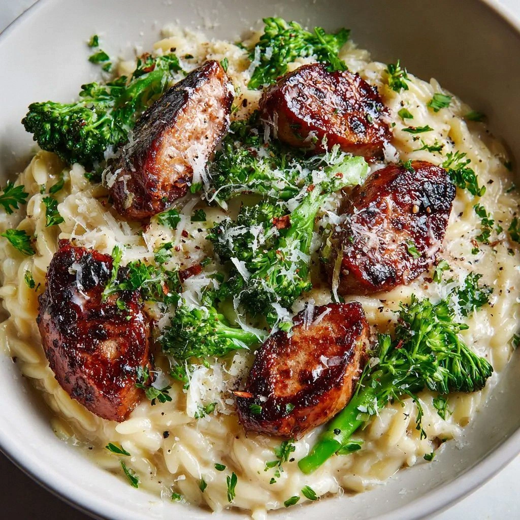 - Flavor: The combination of pre‑cooked sausage, garlic, and a splash of heavy cream creates a savory, velvety sauce that coats each grain of orzo. The final sprinkle of parmesan adds a salty, nutty finish that balances the richness.