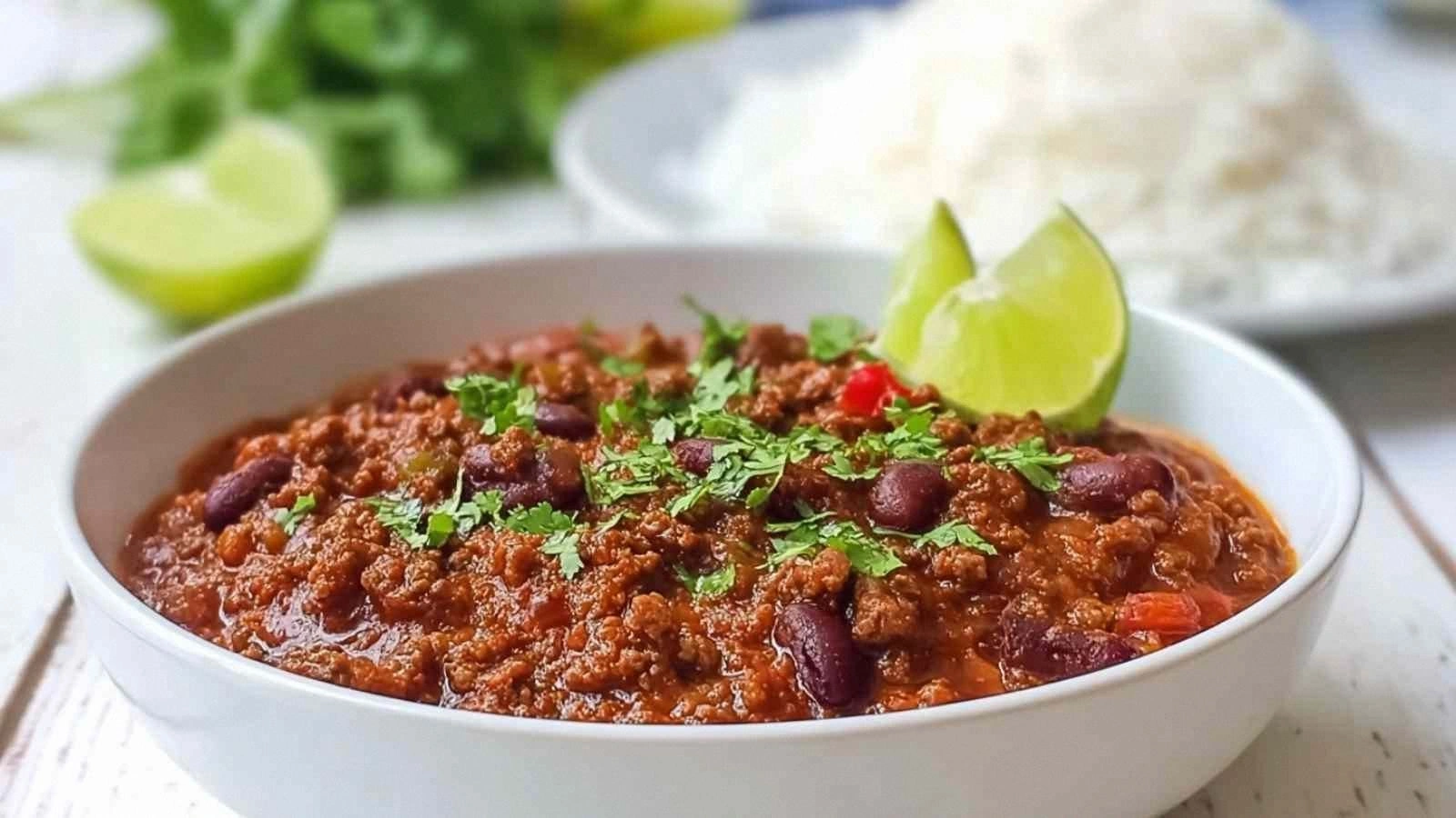 Serve the chili over a bed of cilantro‑lime rice and top with shredded cheese, sour cream, and sliced jalapeños. The rice acts as a neutral base, allowing the chili to shine. The toppings add crunch and creaminess, creating a multi‑textured bite. This variation is perfect for a quick weeknight dinner. The flavors are bold and familiar, yet fresh.