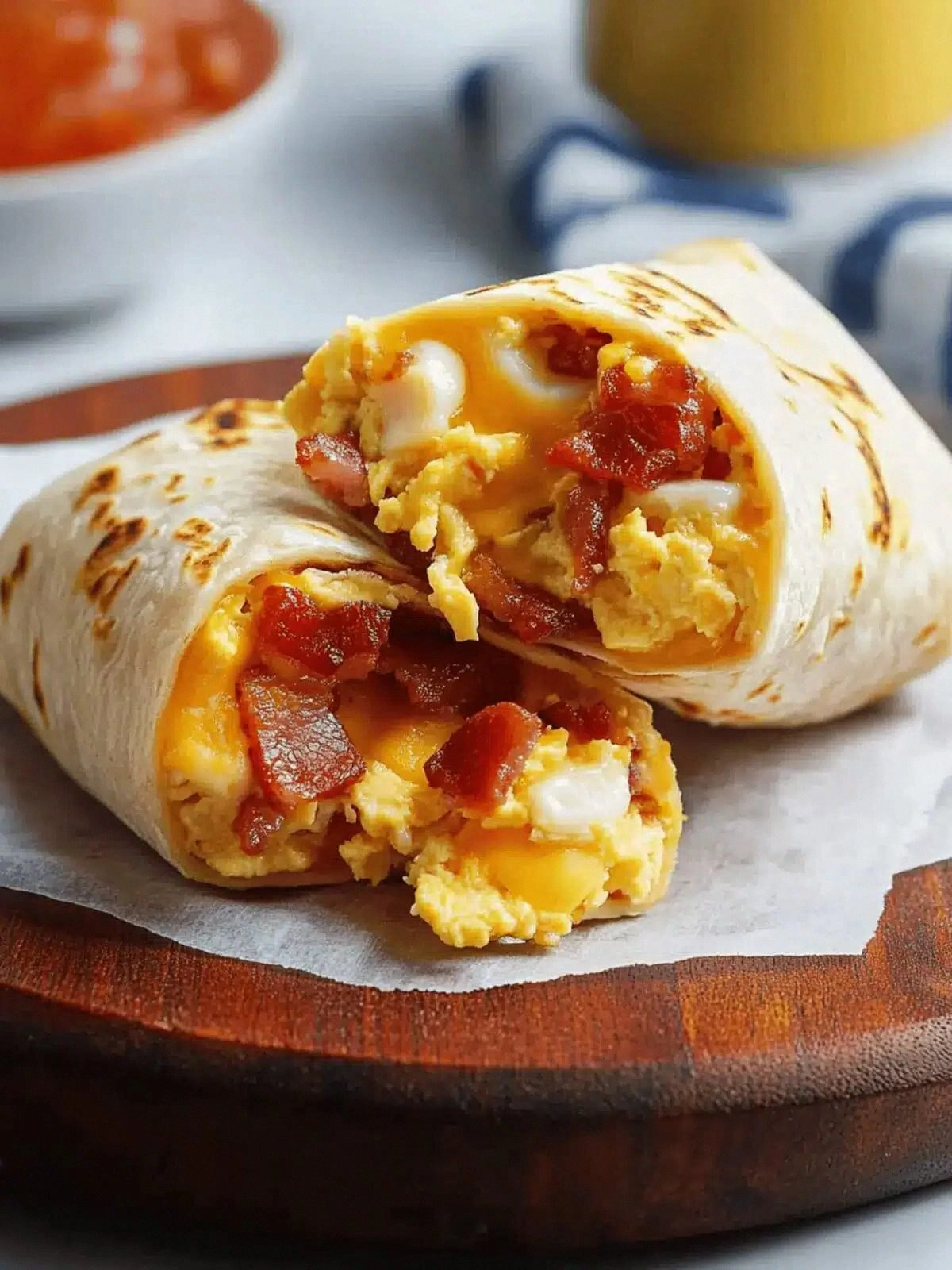 Instead of wrapping, serve the egg and bacon mixture in a soft corn tortilla. Top with salsa, cilantro, and a squeeze of lime. The open‑air presentation gives a fresh, airy feel.