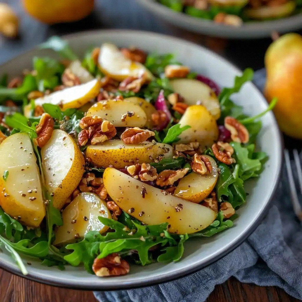 The key to a vibrant salad is the temperature of your ingredients. Use room‑temperature pears and walnuts; cold ingredients can cause the dressing to separate. I’ve found that letting the walnuts sit out for 10 minutes after toasting helps them retain their crunch when mixed with the greens.